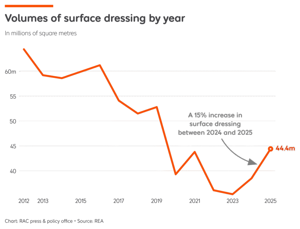 “We hope even more surface dressing will be carried out going forwards as the Government is on board with the preventative maintenance message that the RAC, REA and the Road Surface Treatments Association have been advocating.
